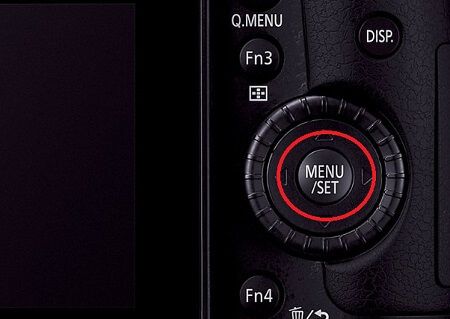 液晶モニター右側のダイヤルの中央のMENU/SETを押す。