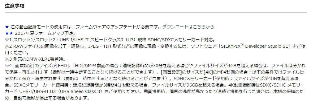 GH5は4K動画撮影時はUHS-II 規格のSDカード(UHS-I/UHS-II U3(UHS Speed Class 3))を推奨している。