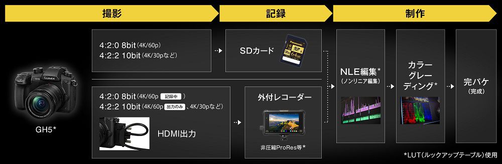 画像はGH5公式HP プロフェッショナル動画性能から引用しています